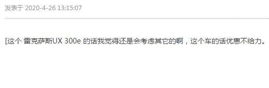此外,雷克薩斯上月推出的首款純電車型UX300e,新車售價(jià)超出30萬元,根據(jù)補(bǔ)貼新政,今年7月22日后將無法享受新能源補(bǔ)貼。同時(shí),從論壇上消費(fèi)者的反應(yīng)來看,對其似乎也不:太看好,不禁讓人對雷克薩斯在華電動(dòng)車“頭炮”能否打響產(chǎn)生擔(dān)憂。