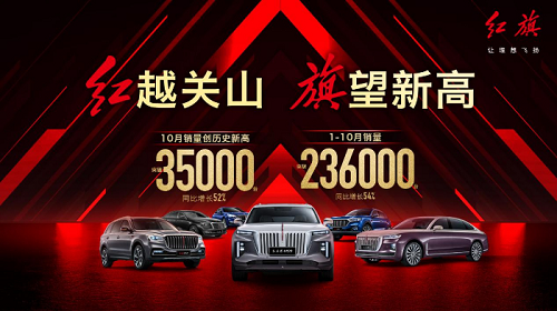 每一分對(duì)極致產(chǎn)品付出的努力,都將贏得客戶最珍貴的選擇和信任。10月,紅旗H9終端銷售量突破4000臺(tái),緊跟一線豪華品牌同級(jí)車型,繼續(xù)擴(kuò)大國產(chǎn)品牌豪華轎車銷量領(lǐng)先優(yōu)勢(shì);紅旗E-HS9以終端銷售量突破810臺(tái)的成績,創(chuàng)下單車型月銷量紀(jì)錄;紅旗“雙9”成為增強(qiáng)客戶產(chǎn)品體驗(yàn)、帶動(dòng)新紅旗產(chǎn)品矩陣向上突破的強(qiáng)大“引擎”。