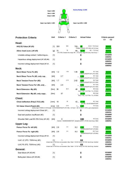 從試驗結(jié)果來看,車輛潰縮區(qū)吸能狀態(tài)良好,前潰縮區(qū)很好的吸收了臺車撞擊后的能量;乘員艙完整且乘員生存空間充足,車門可以順利打開;約束系統(tǒng)方面,氣囊正常點爆,假人頭部與氣囊在碰撞過程中接觸穩(wěn)定,車內(nèi)假人被約束在座椅上,安全帶未發(fā)生失效且座椅安裝點及座椅骨架也無明顯變形;從現(xiàn)場假人測量數(shù)據(jù)看,副駕駛側(cè)假人的頭部、頸部、胸部等部位受到的傷害值很小,各項數(shù)據(jù)指標(biāo)均低于高性能限值,成績?yōu)闈M分。本次試驗驗證了全新紅旗HS7在正面副駕駛碰撞中,對車內(nèi)乘員保護(hù)性能良好。