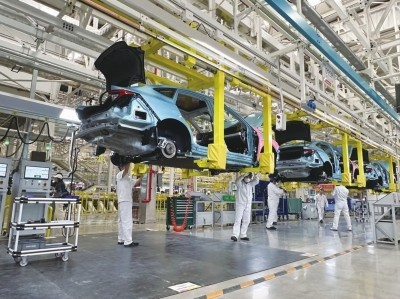 東風(fēng)本田位于武漢經(jīng)開區(qū)的新能源工廠智能生產(chǎn)線。張家振/攝影