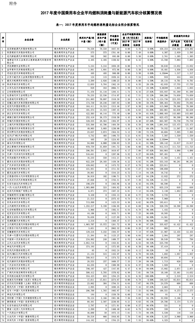 附件:2017年度中國乘用車企業(yè)平均燃料消耗量與新能源汽車積分核算情況表.pdf