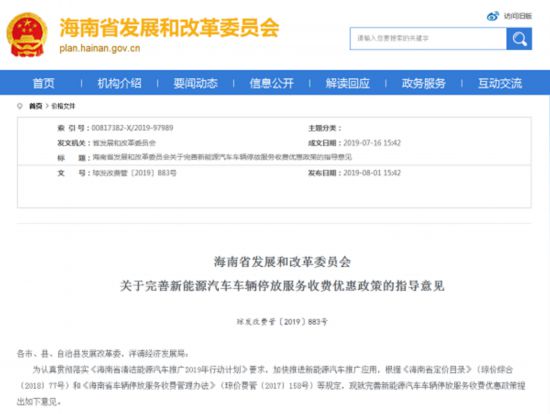 8月1日,海南省發(fā)展和改革委員會(huì)發(fā)布《關(guān)于完善新能源汽車車輛停放服務(wù)收費(fèi)優(yōu)惠政策的指導(dǎo)意見》(以下簡稱《意見》),提出一系列指向清晰的指導(dǎo)意見。據(jù)此,海南年內(nèi)將出臺(tái)新能源汽車車輛停放服務(wù)收費(fèi)優(yōu)惠政策,不僅比燃油汽車停車收費(fèi)優(yōu)惠,而且新能源汽車在公共區(qū)域停車還將免費(fèi)。