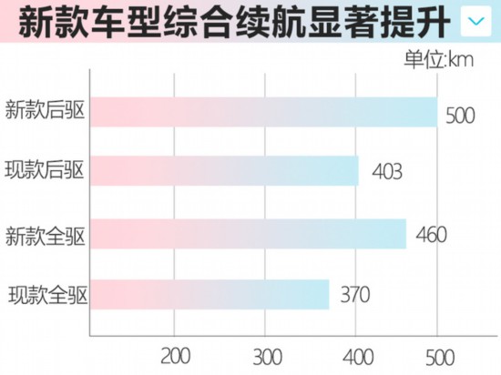 MARVEL X是榮威在2018年推出的一款A(yù)+級(jí)純電動(dòng)SUV,在售車型包括兩電機(jī)后驅(qū)、三電機(jī)全驅(qū)兩款車型,綜合續(xù)航里程分別為403km、370km。日前,網(wǎng)上車市獲得了新款MARVEL X的相關(guān)消息,新車針對(duì)續(xù)航進(jìn)行了大幅提升,兩電機(jī)后驅(qū)、三電機(jī)全驅(qū)兩款車綜合續(xù)航分別可達(dá)500km、460km。