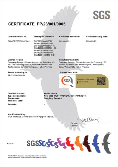 新5008成為汽車行業(yè)內(nèi)首個榮獲SGS金標認證的健康座駕