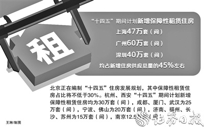 據(jù)了解,“十四五”期間,上海計劃新增保障性租賃住房47萬套(間)、廣州計劃新增60萬套(間)、深圳計劃新增40萬套(間),均占新增住房供應(yīng)總量的45%左右。北京正在編制“十四五”住房發(fā)展規(guī)劃,其中保障性租賃住房占比將不低于30%。杭州、西安“十四五”期間計劃新增保障性租賃住房均為30萬套(間),成都、廈門、武漢為25萬套(間),寧波、佛山為20萬套(間),濟(jì)南、福州、長沙、蘇州為15萬套(間),南京12.5萬套(間)。