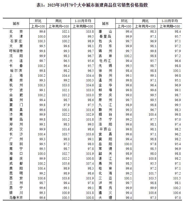 中新網(wǎng)11月16日電 據(jù)國家統(tǒng)計局網(wǎng)站消息,國家統(tǒng)計局16日公布2023年10月份70個大中城市商品住宅銷售價格變動情況。數(shù)據(jù)顯示,10月份,70個大中城市商品住宅銷售價格環(huán)比下降城市個數(shù)略增,各線城市商品住宅銷售價格環(huán)比下降、同比漲跌互現(xiàn)。