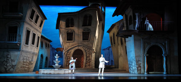 7月13日當晚,隨著歌劇指揮莫蘭迪引領國家大劇院管弦樂團奏出《塞維利亞理發(fā)師》膾炙人口的序曲旋律,大幕拉開,由著名舞臺設計師張武設計的“高迪建筑風格”的塞維利亞小鎮(zhèn)展現(xiàn)在觀眾面前。