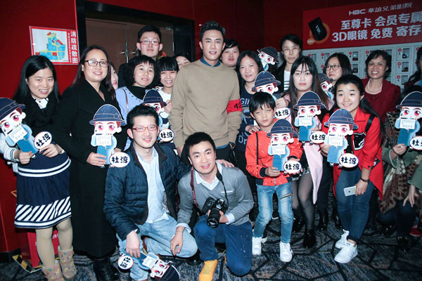 粉絲為杜淳繪“車夫”卡通形象 與人形立牌合影