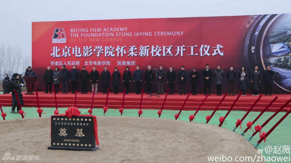 12月25日,北京電影學(xué)院懷柔新校區(qū)開(kāi)工儀式舉行。趙薇、黃渤作為資深校友現(xiàn)身奠基儀式,穿羽絨服鏟土。趙薇贊“地杰人靈之地!”