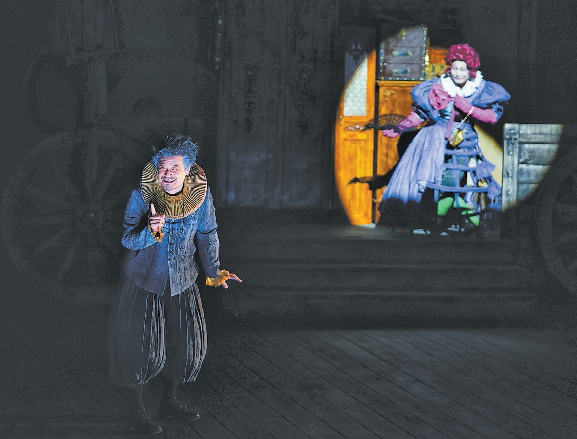 臨近開演,北京國際戲劇中心·曹禺劇場的前廳里,幾位打扮夸張的流浪戲班成員正在熱情地招攬觀眾捧場演出,這邊拍照簽名,那邊殷勤地獻上節(jié)目單,觀眾的要求無有不應。時隔近一年,北京人藝新版《慳吝人》近日再度登臺曹禺劇場,莫里哀的經(jīng)典名作跨越近400年的時間,以嶄新的面貌為今天的觀眾送上了一整晚盡興的歡笑。