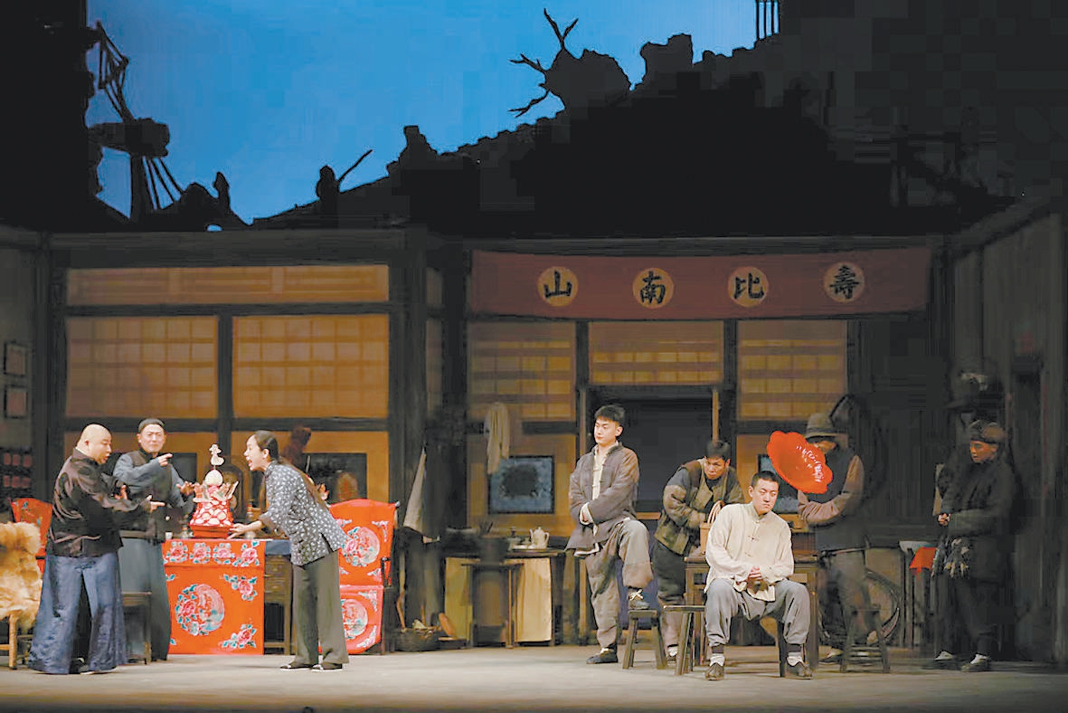舞臺(tái)遠(yuǎn)處,老北京城門樓子的剪影橫亙天際;近處,木窗灰墻圍起一間極有年代感的平房;平房里,虎妞正在和父親劉四爺爭吵——這段經(jīng)典劇情出自家喻戶曉的《駱駝祥子》。