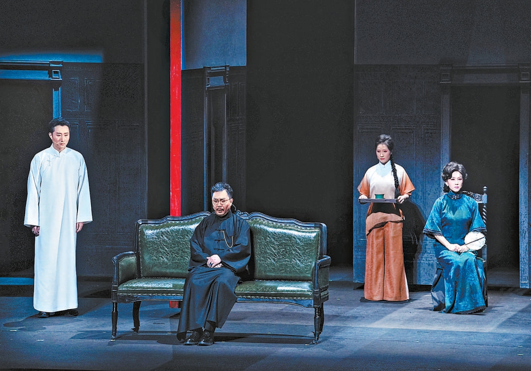 在音樂上,《雷雨》有意“收斂”了北京曲劇劇種基因里的濃郁京味兒,作曲家戴頤生雖以北京曲劇傳統(tǒng)單弦牌子曲為根基,但在傳統(tǒng)樂隊中混編西洋樂器,最大限度地為這個并非京味兒的題材匹配相稱的、民族化與交響性并重的音樂風(fēng)格。北京曲劇的幾代演員堅守程式規(guī)范,以扎實的功底、細(xì)膩的表演塑造了《雷雨》中性格鮮明的一眾角色,展現(xiàn)了劇種傳承創(chuàng)新的活躍生命力。