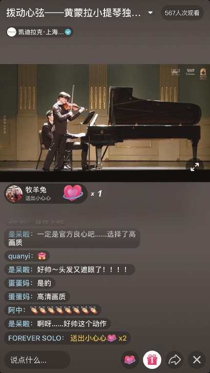 當(dāng)然,也有潛水于蕓蕓眾生里曾親臨現(xiàn)場(chǎng)的朋友,隔著屏幕回溫小提琴家黃蒙拉與鋼琴家薛穎佳演奏貝多芬《A大調(diào)第9小提琴與鋼琴奏鳴曲“克魯采”》Op.47、貝里奧《芭蕾情景》Op.100和拉威爾《茨岡》等曲目,往日情景再現(xiàn),讓人懷戀。