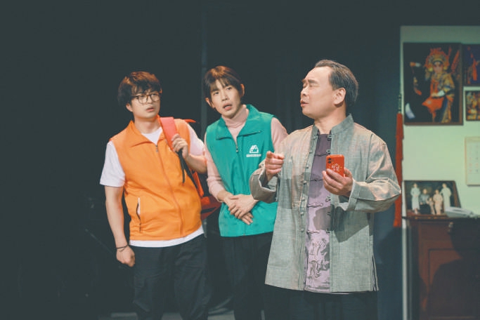 劇中,松巖團(tuán)長邊講解邊示范被形容為“用腳給了手一個(gè)嘴巴”的京劇武術(shù)動作“飛腳”,還有戲曲表演中的“四功五法”;劉旸一會兒穿著“立人家政”的馬甲當(dāng)“保姆”,一會兒又穿著時(shí)尚潮服表演“脫口秀”;宇文秋實(shí)戴上假發(fā)是滿口方言的“四川小保姆”,換成帽子又成了白發(fā)蒼蒼的“北京老大爺”。而松巖之子松天碩,在劇中也惟妙惟肖扮演了好幾個(gè)各有亮點(diǎn)的生動角色。