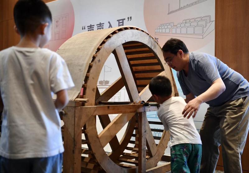 雖不是明星藝術(shù)家參與的互動活動,但現(xiàn)場卻坐得滿坑滿谷,一臺巨大的風(fēng)車成為切入點(diǎn)。剛工作時,鄭晨曾經(jīng)“自以為是”地為這臺大家伙起了一個稍顯學(xué)術(shù)的名字,但前輩一句話卻化繁為簡:這就是“風(fēng)車”,作用就是營造風(fēng)聲。通過搖動手柄,依靠帆布摩擦,逼真的風(fēng)聲回蕩耳畔。而現(xiàn)場幾位小朋友也被請上臺,體驗(yàn)“造風(fēng)”的樂趣。不過這個工作其實(shí)是個體力活兒,鄭晨說自己曾經(jīng)因?yàn)樵谝粋€戲中的強(qiáng)度有點(diǎn)大,甚至因?yàn)樾乜谔鄱婚W念“自己究竟是要告別人藝還是告別人世?!?/p>