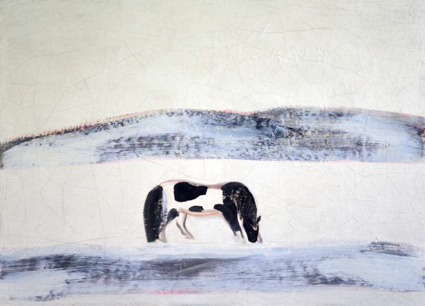 《馬》(圖見本版右上)是中國美術(shù)館藏唯一一件常玉的油畫作品。畫面中水天一色,一匹馬正在河中飲水。河灘和遠(yuǎn)山的空間布置,既融合了中國傳統(tǒng)繪畫美學(xué),呈現(xiàn)出平遠(yuǎn)的山水畫意境,又具有西方現(xiàn)代藝術(shù)所追求的平面形式構(gòu)成原理。1984年春,這幅畫曾被打包在潘玉良的數(shù)千幅作品中運(yùn)回中國,卻因作品狀況不佳、顏料層脆弱剝落而長期藏于庫房。2018年,中國美術(shù)館藝術(shù)品修復(fù)部將其修復(fù)完成。如今,這匹曾被畫家掛在自己工作室中的小馬亮相展覽。