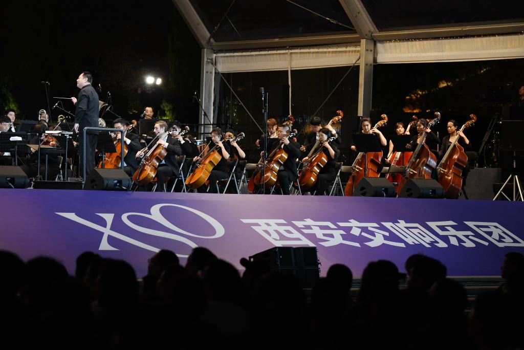 10日晚,2023西安交響樂團大雁塔戶外公演在西安市大雁塔北廣場舉行。這場免費戶外公演同時也通過網(wǎng)絡(luò)平臺進行線上直播,讓廣大西安市民、游客和網(wǎng)友同享一場戶外大型古典音樂盛宴。