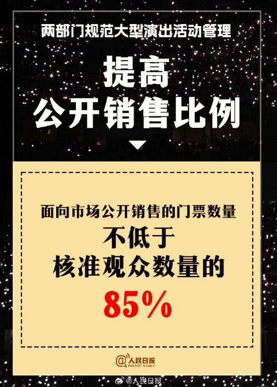 ?兩部門通知:①實(shí)名購票、實(shí)名入場。5000人以上演唱會(huì)購票人和入場人必須一致;②大型演出要設(shè)定梯次退票標(biāo)準(zhǔn);③公開銷售門票不低于核準(zhǔn)觀眾數(shù)量的85%;④嚴(yán)禁假唱、假演奏。更多↓↓↓詳戳,周知!