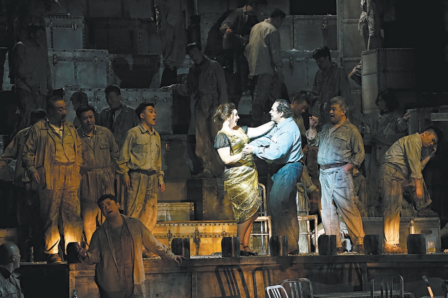 頗有年代感的大皮箱擺了一地,臺球桌橫陳潦草,酒杯滿天亂飛,酒館老板、礦工、盜匪粉墨登場,一派粗糲的莽荒氣質撲面而來,如同一部酣暢淋漓的西部大片。上周末,國家大劇院制作的普契尼歌劇《西部女郎》正在緊張彩排,7月23日至27日,著名指揮家卡羅·利茲將執(zhí)棒國家大劇院管弦樂團,攜手中、美、意三國藝術家組成的創(chuàng)演陣容,把這部描寫加利福尼亞淘金熱的歌劇帶上2024國家大劇院歌劇節(jié)的舞臺。