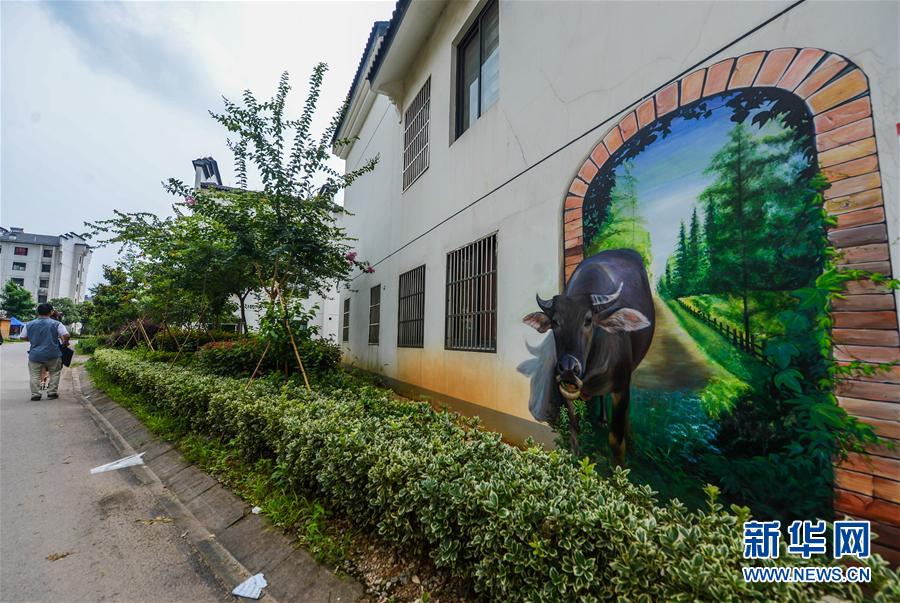 浙江省長興縣北湯村的村舍墻壁上繪有3D畫(7月13日攝)。 7月初,由上海的藝術(shù)家團(tuán)隊(duì)繪制的多幅3D藝術(shù)畫亮相浙江省長興縣林城鎮(zhèn)北湯村的村舍墻上。林城鎮(zhèn)北湯村是浙江省長興縣新農(nóng)村建設(shè)示范點(diǎn),此次繪制3D藝術(shù)畫墻,是該村提升農(nóng)村品味、打造“詩畫北湯”的新舉措。 新華社記者徐昱攝