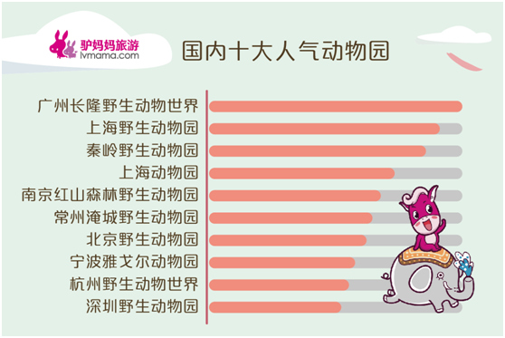 除此之外,驢媽媽根據(jù)去年一年其平臺(tái)上的訂單數(shù),統(tǒng)計(jì)出了國(guó)內(nèi)動(dòng)物園類景區(qū)人氣榜,廣州長(zhǎng)隆野生動(dòng)物世界依然最受游客追捧,而上海野生動(dòng)物園、秦嶺野生動(dòng)物園、上海動(dòng)物園、南京紅山森林動(dòng)物園、常州淹城野生動(dòng)物園、北京野生動(dòng)物園、寧波雅戈?duì)杽?dòng)物園、杭州野生動(dòng)物世界、深圳野生動(dòng)物園也位列十大人氣動(dòng)物園榜單之列。