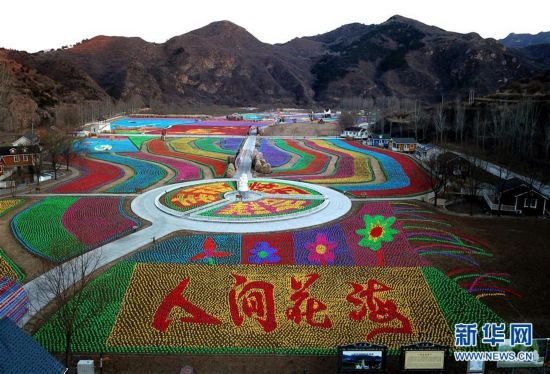 從空中俯瞰北京市密云區(qū)車道峪村用風(fēng)車打造的“人間花?!敝黝}景觀(12月5日攝)。近日,北京市密云區(qū)車道峪村村民用約120萬只風(fēng)車,打造出一片占地500畝的“風(fēng)車?!保鄠€主題。該景觀于12月8日正式亮相。新華社記者 羅曉光 攝