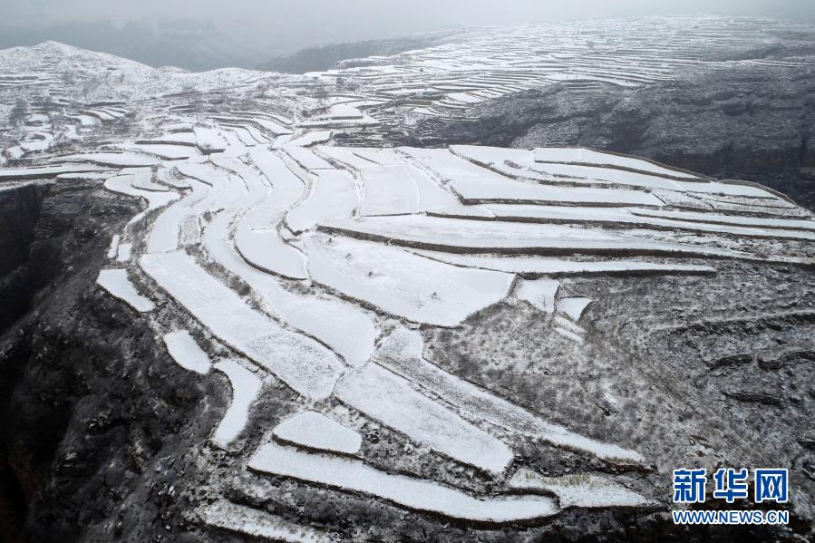 連日來,河北省沙河市西部山區(qū)出現(xiàn)降雪天氣,白雪覆蓋的梯田宛如一幅水墨畫。