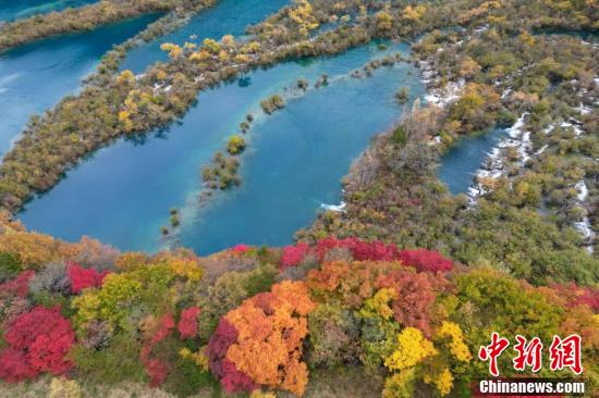 10月23日,深秋時(shí)節(jié),四川九寨溝如同油畫(huà)一般,漫山遍野的紅葉絢麗多彩,與清澈見(jiàn)底的湖水交相輝映,美輪美奐,“秋日童話”正上演。 張浪 攝