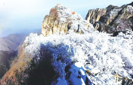 冬天的五老峰景區(qū),如果遇到下雪天,會有難得一見的雪后云海景觀。從高空俯瞰,群山峰巒迭起,在洶涌的云海波濤中若隱若現(xiàn),頗為壯觀;被白雪覆蓋的各種林木,色彩各異,美不勝收。