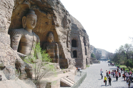大同云岡石窟依山開鑿,是中外文化、中國少數(shù)民族文化和中原文化、佛教藝術(shù)與石刻藝術(shù)相融合的一座文化藝術(shù)寶庫。