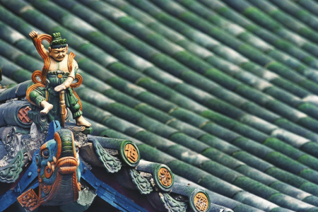 洪洞廣勝寺飛虹塔是我國最大最完整的一座琉璃塔,歷經(jīng)500年依舊流光溢彩。圖為飛虹塔底層回廊東南翼角武士儐伽像。
