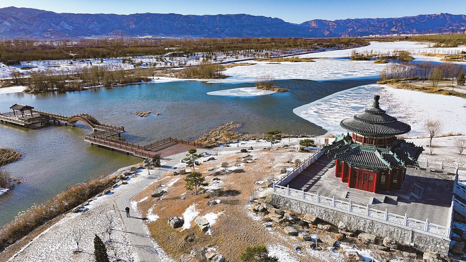 2月4日,初春的太原汾河景區(qū)四期,在微風輕撫下宛如夢幻之境。白雪溫柔地覆蓋著河面冰層,晶瑩剔透,岸邊樹木與蜿蜒的汾河相映成趣,行人漫步其間,愜意悠然,盡情享受汾河初春時節(jié)的美好。