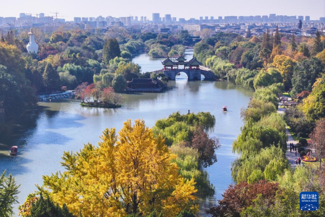 11月19日拍攝的江蘇揚州瘦西湖風景區(qū)(無人機照片)。