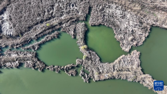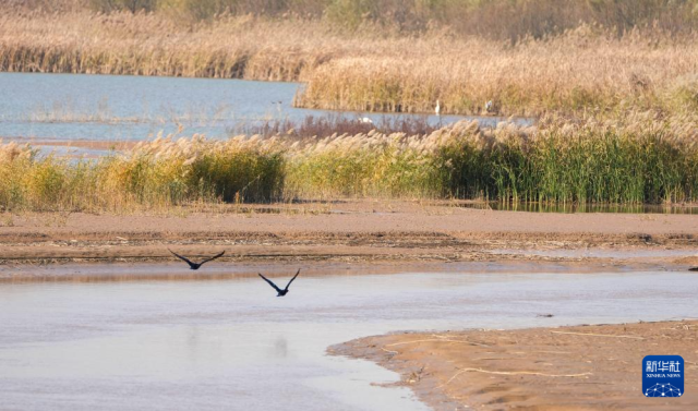 11月19日在山東濟南拍攝的濟西國家濕地公園(無人機照片)。新華社記者徐速繪攝