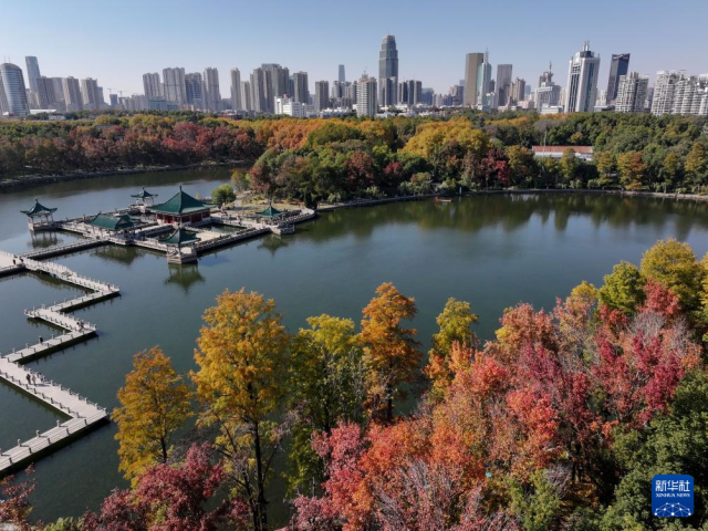 11月18日在湖北省武漢市東湖風景區(qū)拍攝的初冬景色(無人機照片)。新華社發(fā)(趙軍攝)