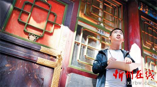 來自重慶的初一學生坤坤在五臺山菩薩頂觀察屋頂?shù)募公F。