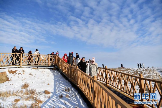 11月26日拍攝的新疆福海縣烏倫古湖海上魔鬼城景區(qū)美景。 福海縣烏倫古湖海上魔鬼城景區(qū)位于新疆阿勒泰地區(qū)福??h吉力湖東岸,有著獨特的雅丹地貌和水域景觀,是當?shù)刂穆糜蝿俚亍?新華社記者 沙達提 攝