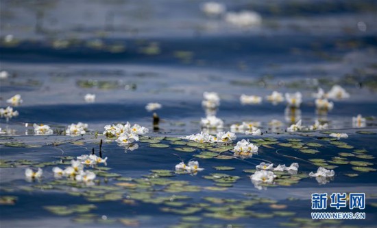 在洱海中開放的海菜花(5月31日攝)。在云南大理洱海,被視為“水質(zhì)風(fēng)向標(biāo)”的海菜花一度難覓蹤跡。2016年底,云南省開啟搶救式保護(hù)工作,全面打響洱海治理攻堅(jiān)戰(zhàn)。2019年洱海全湖水質(zhì)繼2018年后再次實(shí)現(xiàn)7個(gè)月Ⅱ類,主要水質(zhì)指標(biāo)變化趨勢總體向好。如今海菜花又在清澈的湖水中隨波蕩漾。 (新華社記者 江文耀 攝)