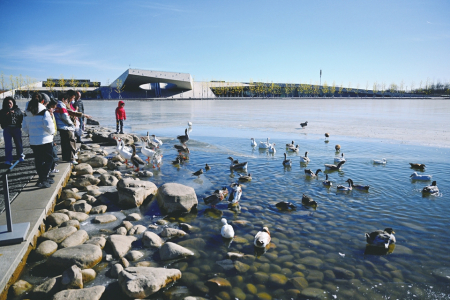 1月11日,太原植物園內(nèi),鵝、野鴨等禽鳥(niǎo)與游客互動(dòng)嬉戲。近年來(lái),該園良好的生態(tài)環(huán)境吸引了眾多鳥(niǎo)類(lèi)前來(lái)?xiàng)?,形成一道和諧美麗的風(fēng)景。