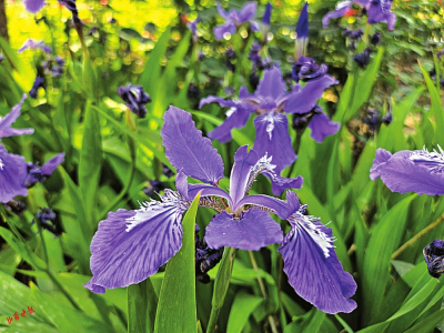 “藍(lán)色妖姬飛舞燦,輕盈蝶韻氣如蘭。射鳶一辯空中嘯,花萼三枚賦劍繁?!?月的狄仁杰公園,鳶尾花競(jìng)相開放,那溫柔的花瓣優(yōu)雅地綻放著,紫色中透著神秘感。水仙花似的綠葉一條條地襯托著紫色花瓣,煞是好看。