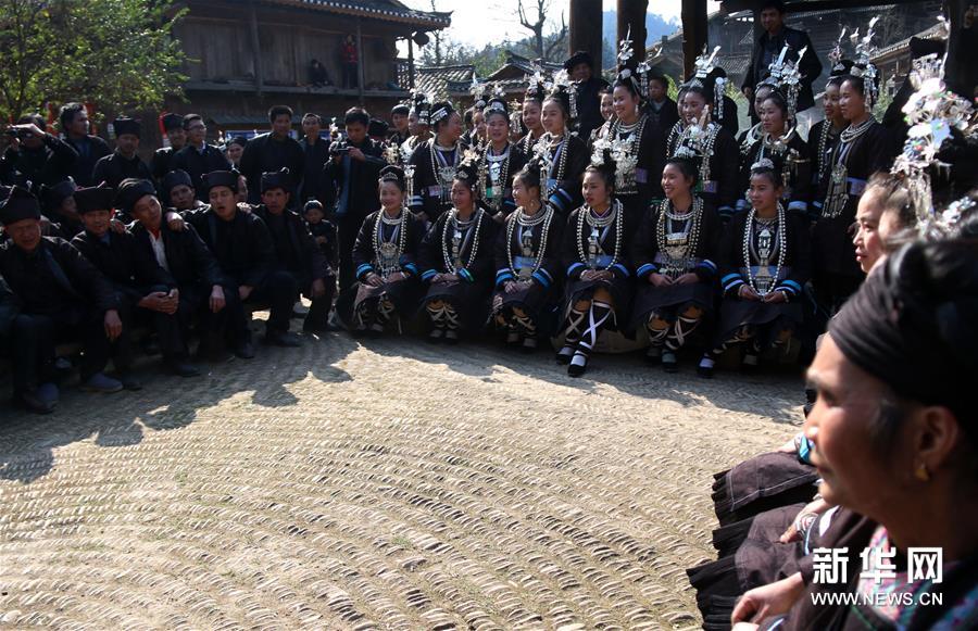 2月17日,貴州省黔東南苗族侗族自治州黎平縣巖洞鎮(zhèn)述洞村開展一年一度的“鼓樓之宗”活動。侗族老人在當地最古老的鼓樓——始建于明代的獨柱鼓樓講述侗族遷徙歷程,告誡大家要敬老尊賢、和睦相處、團結友善,侗族青年男女身著節(jié)日盛裝圍著鼓樓一邊踩歌堂,一邊唱遷徙古歌,之后在鼓樓旁進行“侗族大歌”對唱,感懷族群遷徙的歷史,傳承傳統(tǒng)文化。新華社發(fā)(楊代富 攝)