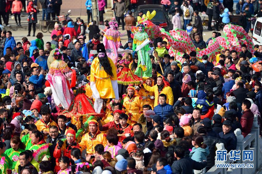 2月21日,社火隊(duì)在進(jìn)行巡游拜年。當(dāng)日,有著千年歷史的傳統(tǒng)村落——山東省章丘市三德范村組織31個(gè)社火隊(duì)舉行社火巡游拜年活動(dòng),在元宵佳節(jié)來臨之際為鄉(xiāng)親們送祝福。新華社記者 郭緒雷攝