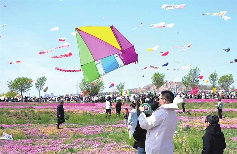 風(fēng)箏愛(ài)好者在放飛風(fēng)箏 新華社記者 徐速繪 攝
