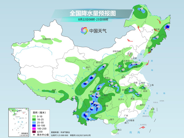 今起三天(8月22日至24日),我國(guó)降雨將分為南北兩條雨帶,北方降雨集中在華北、東北等地,明天起新一輪降雨將來(lái)襲;南方雨帶位于云南、貴州、四川盆地西部一帶,部分地區(qū)有大到暴雨。而在江南中北部、江淮、江漢南部、黃淮等地,大范圍高溫天氣仍將持續(xù),多地今后7天高溫或“全勤”。