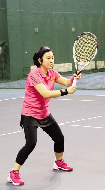 華春瑩能如此積極參與網(wǎng)球活動,一直陪伴在身邊的先生和女兒是她的堅強(qiáng)后盾。華春瑩的先生也是網(wǎng)球愛好者,女兒也在華春瑩這個啟蒙教練的帶領(lǐng)下,揮起了球拍。華春瑩笑說:“我的愿望就是以后全家人能一起打網(wǎng)球,每當(dāng)看到那些一家子都打球的,我就羨慕得要命?!?/p>