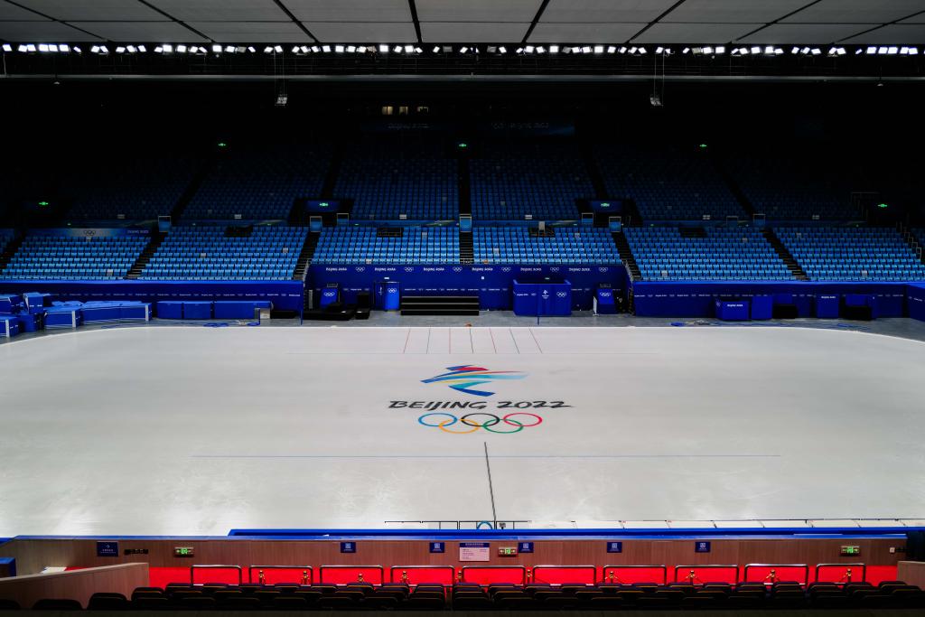 這是1月12日拍攝的首都體育館內景。(新華社發(fā) 王洋 攝)