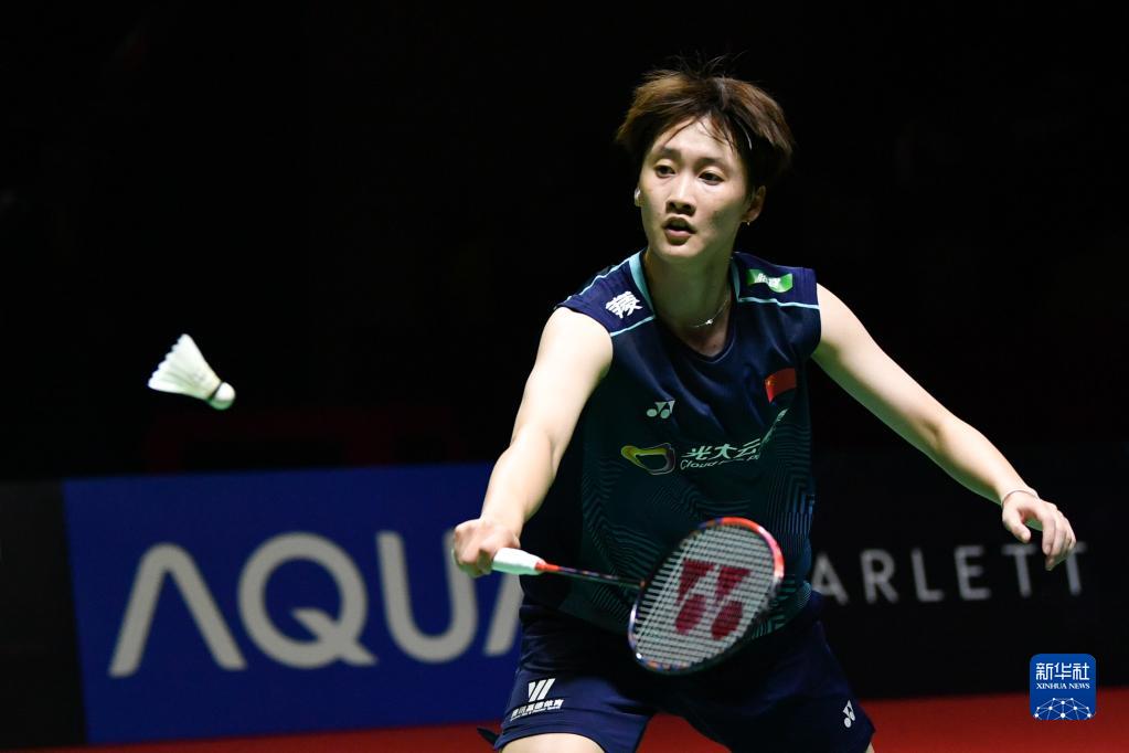 6月17日,陳雨菲在雅加達舉行的2023年印度尼西亞羽毛球公開賽女單比賽中回球。新華社記者 徐欽 攝