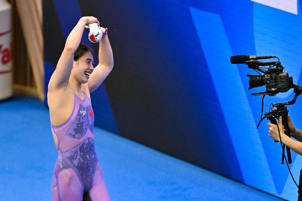 7月24日,張雨霏在決賽后。新華社記者張笑宇攝