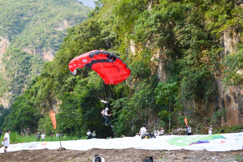 新華社貴陽(yáng)9月6日電(記者駱飛、吳思)6日上午,極限運(yùn)動(dòng)員們相繼從北盤江大橋上飛躍而下,拉開(kāi)了在貴州省六盤水市舉行的2023國(guó)際高橋極限運(yùn)動(dòng)邀請(qǐng)賽世界第一高橋站低空跳傘角逐的序幕。