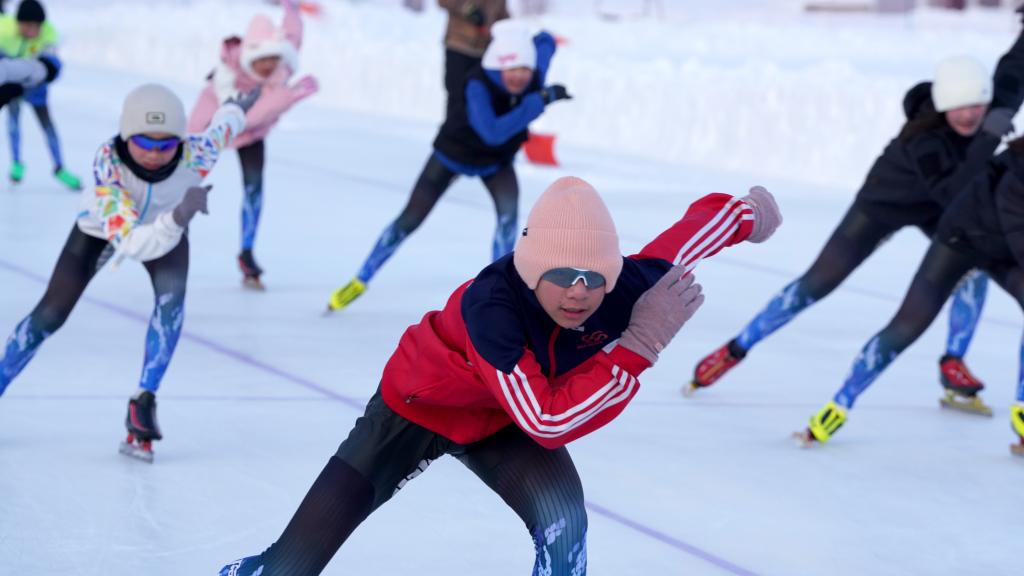 來(lái)自黑龍江省鶴崗市冬季運(yùn)動(dòng)項(xiàng)目訓(xùn)練中心的李海霞教練,正帶著小隊(duì)員們訓(xùn)練。作為一名援疆干部,同時(shí)也是速度滑冰教練員,她將自己的訓(xùn)練理念帶到新疆。